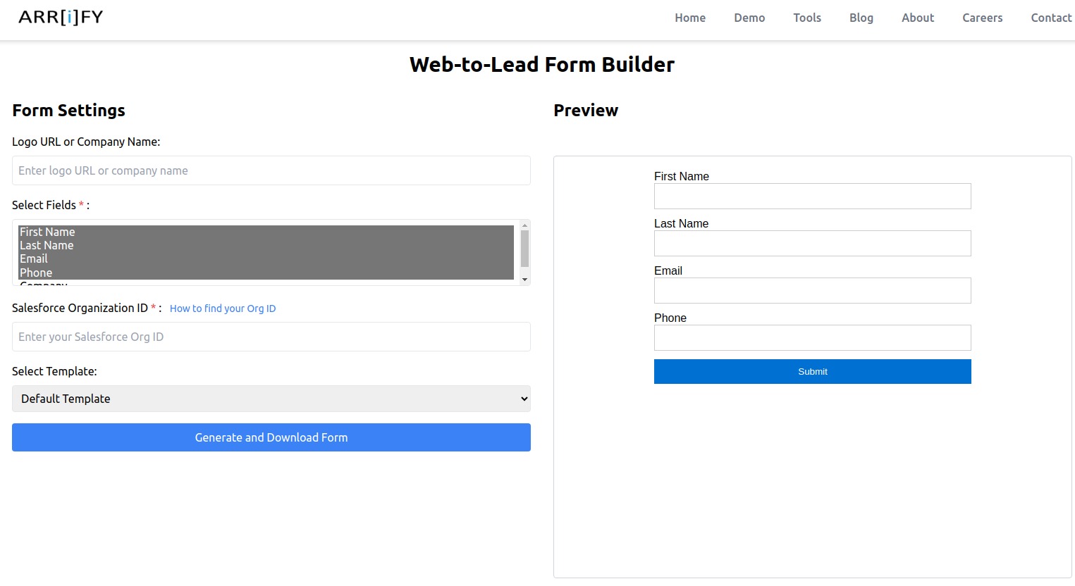 Follow below steps to create and customize your Web-to-Lead form using the Web-to-Lead Form Builder tool